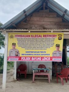 Tribratamubanews.com – Dalam upaya mencegah dan menekan aktivitas penyulingan minyak secara ilegal (illegal refinery) di wilayah hukumnya, Polsek Bayung Lencir melaksanakan kegiatan sosialisasi dan imbauan kepada masyarakat Dusun Patin, Kecamatan Bayung Lencir, Kabupaten Musi Banyuasin.